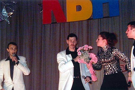 Игорь - Не могу промолчать. Многим знаменит Нью Йорк. Но мне кажется, что главная его жемчужина - русская иммиграция. Мы с вами. Ведь даже сюда мы приехали, как и написано в ветхом завете - Авраам прислал вызов Исааку. Исаак прислал вызов Иакову, Иаков прислал вызов Иосифу. Но послали Иосифа Кабзона подальше в посольстве, а вместо него сюда приехала тетя Роза из Черновиц и ее внучка Белла и мальчик Женя(показывает на ведущего Женю Каминского), который вырос и прислал вызов, на свою голову, всем КВНщикам. Ибо сказано Им в писании - Пойте и веселитесь всякий раз, когда повод у вас есть. Ибо это Мне угодно.